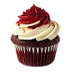 Moist & vibrant red velvet cake topped with rich velvety cream